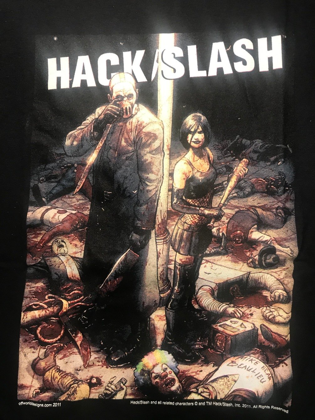 39 leftHACK/SLASH T-shirt (Mike Bear illustration, DDP issue 8 cover)Tim SeeleyOfficially licensed tee. Black Fruit of the Loom Heavy Cotton.$2020usdLarge Size Shirt$2020usdMedium Size Shirt$2020usdSmall Size Shirt$2020usd2 Extra Large SIze Shirt420usdQuantityAdd to cartAdd to wishlist New wishlistShareShare on XShare on Facebook Copy linkCopy product URL